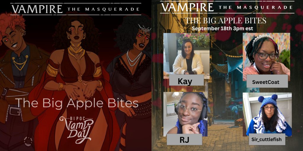 Take a bite with us this year for #bipocvampday2025 in NYC! What happens when the coterie of kindred takes some much needed R&R time? Every wonder what kindred do with their free time? How does a kindred live through the complicated political struggles of being a vampire along with their human existence? And is there really such a thing as R&R time for kindred, or are they always going to be reminded of their eternal struggles of dealing with a World of Darkness.